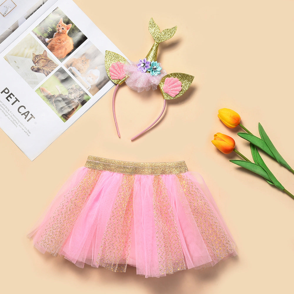 2 Pieces Kid Girl Party Sequins Mesh Skirt & Headband Wholesale 84995762