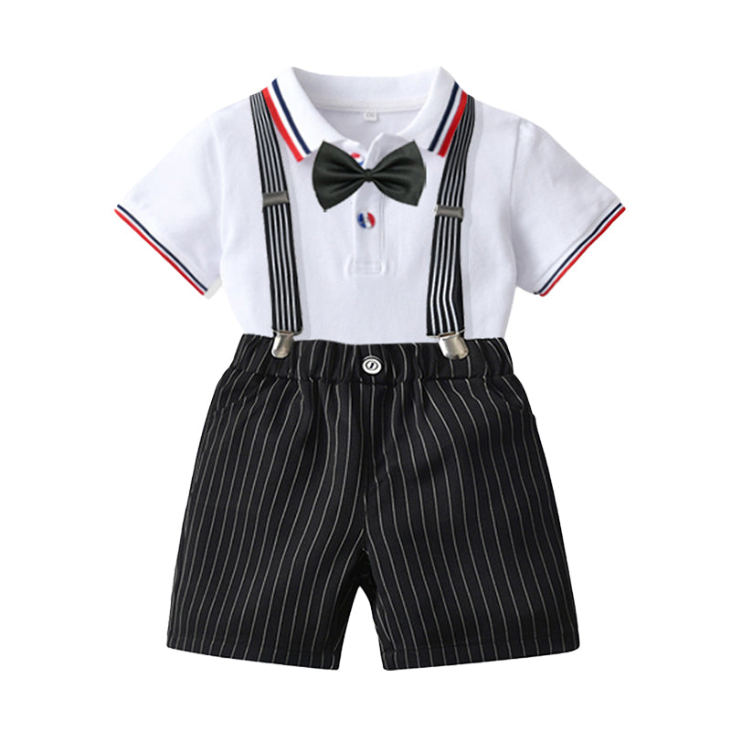 Sku : 220531607Clothing Categories : Clothing SetsGender : BoysAge : 12months-6yearsFabric : Cotton BlendColor : WhiteSeason : SummerPattern : Striped,BowOccasion : Birthday,Party