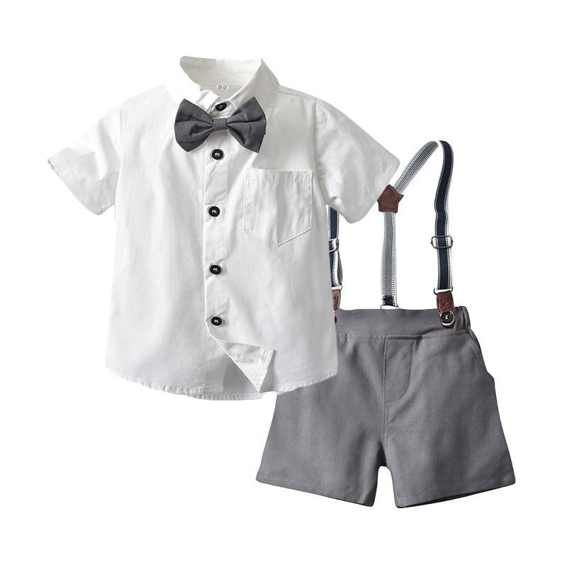 2 Pieces Set Baby Kid Boys Birthday Solid Color Bow Shirts And Rompers Wholesale 221214141