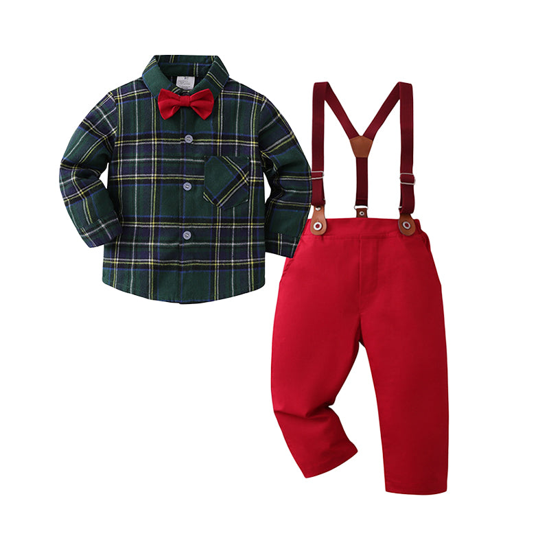2 Pieces Set Baby Kid Boys Checked Bow Shirts And Trousers Suits Wholesale 221206380