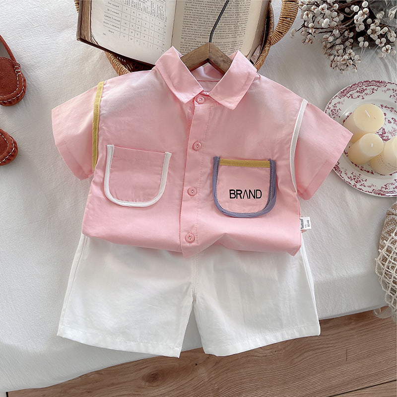 2 Pieces Set Baby Kid Boys Print Polo Shirts And Solid Color Shorts Wholesale 250604106