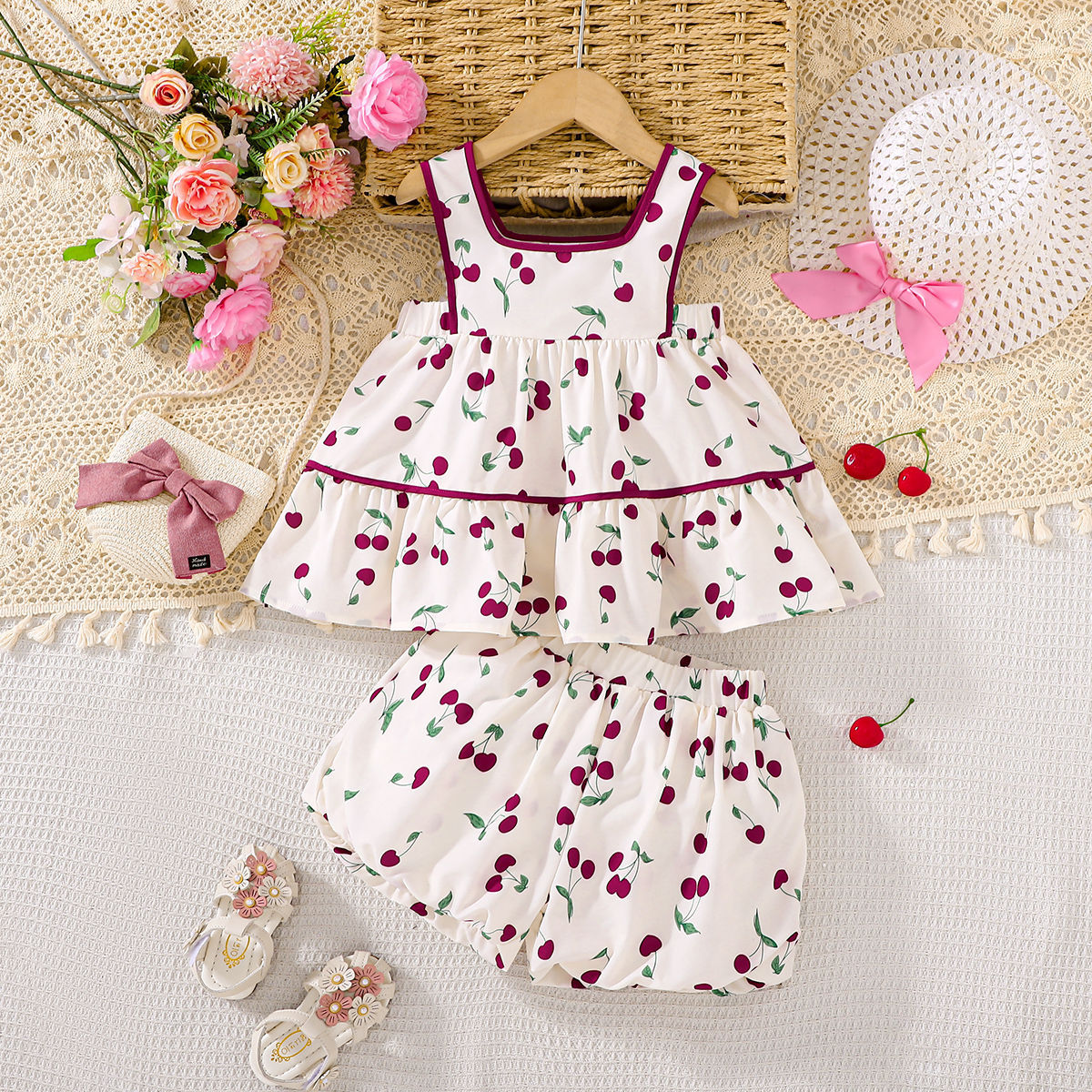 2 Pieces Set Baby Kid Girls Fruit Print Tank Tops And Shorts Wholesale 250708136