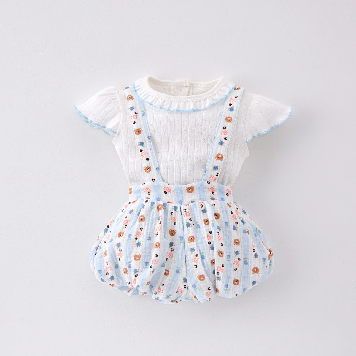 Sku : 250227113Clothing Categories : Clothing SetsGender : GirlsAge : 3months-2yearsFabric : Cotton BlendColor : BlueSeason : SummerPattern : Solid Color,Animals,PrintedOccasion : Casual