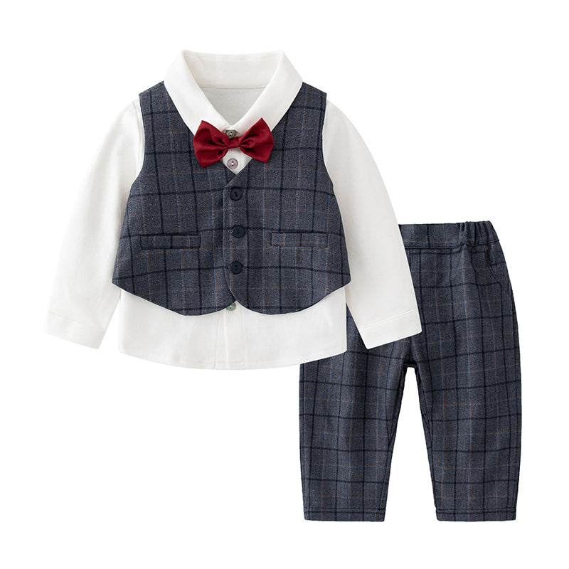 3 Pieces Set Baby Kid Boys Birthday Party Solid Color Bow Shirts Checked Vests Waistcoats And Pants Wholesale 220916440