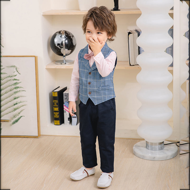 3 Pieces Set Baby Kid Boys Birthday Party Solid Color Bow Shirts Checked Vests Waistcoats And Pants Wholesale 221216325