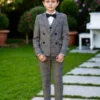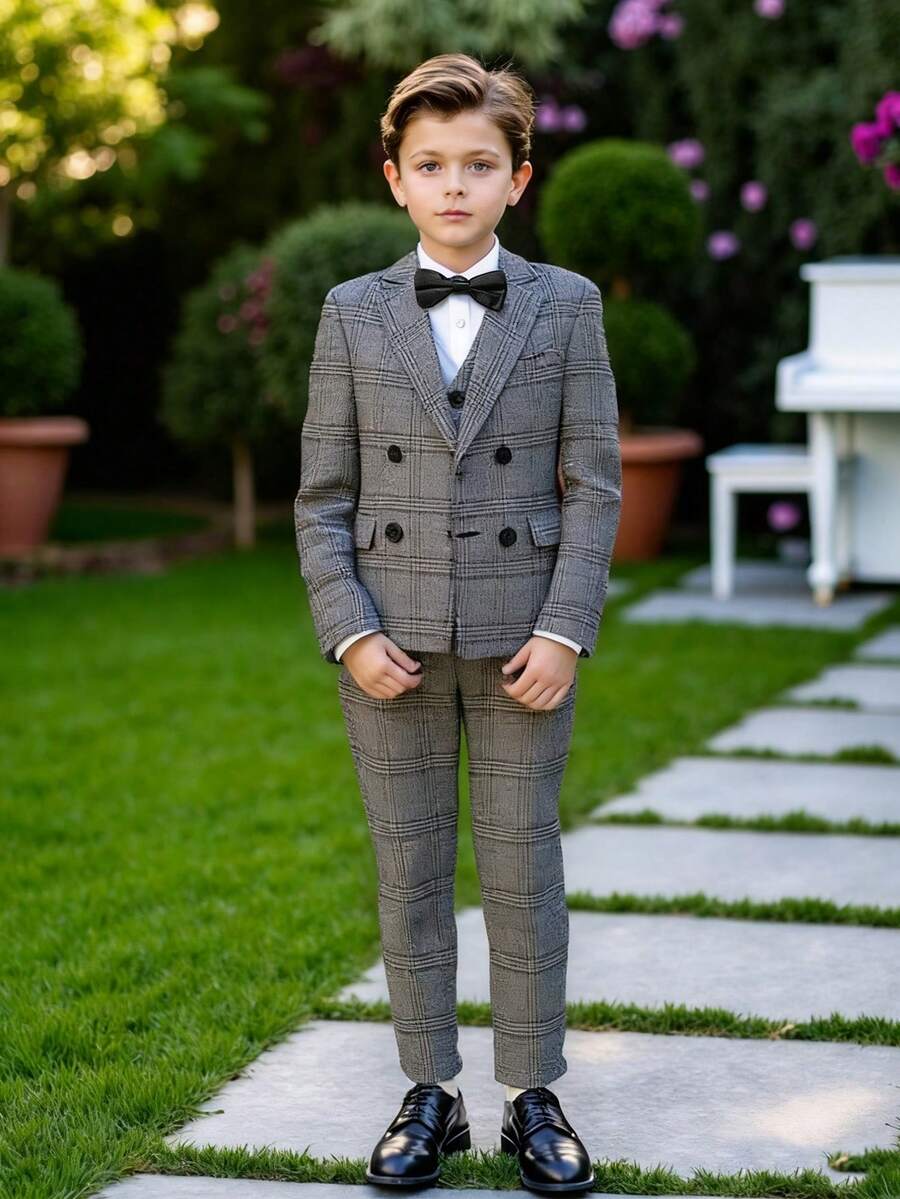 3pcs Boys Suit Set, New Flower Boy Wedding Formal Outfit, Performance Suit For Toddler, Little Kid, Big Kid, Teenager, Includes Blazer, Pants, Bow Tie