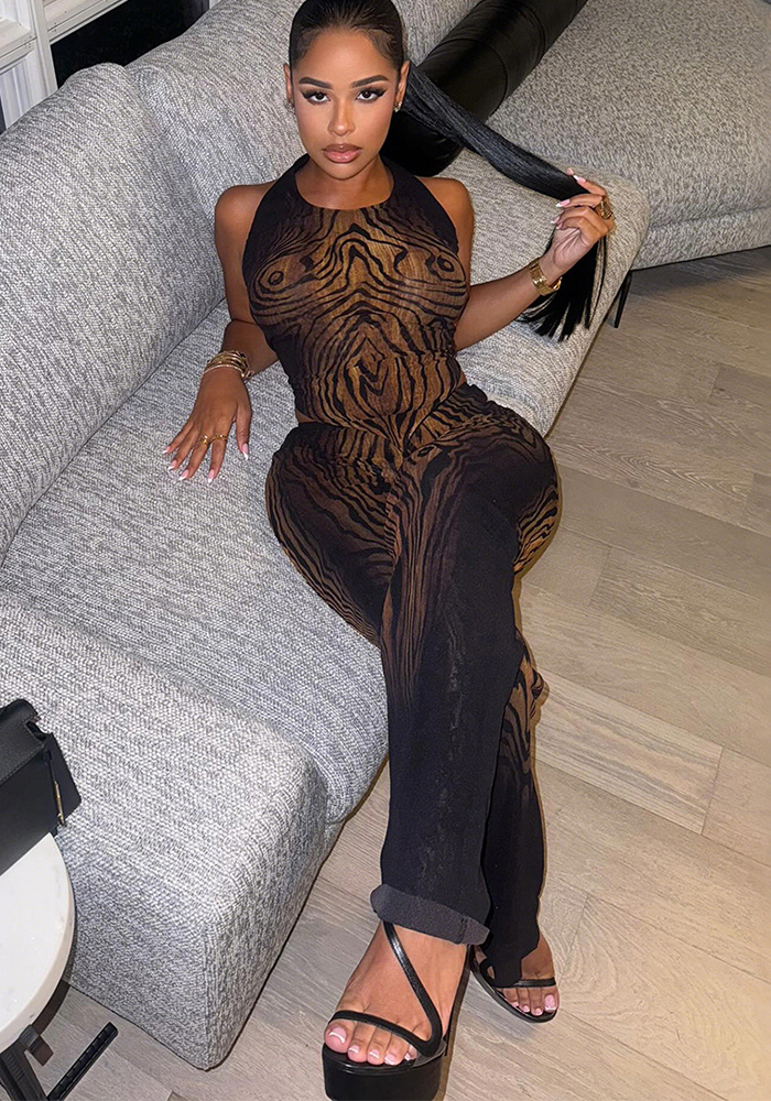 Autumn Women’s Graffiti Print Sleeveless Halter Tank Top Tight Fitting Pants Set