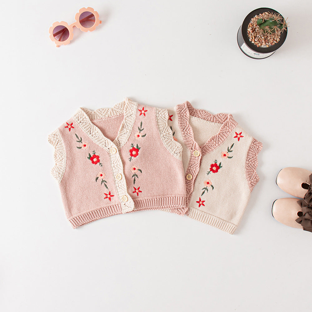 Baby Girls Flower Embroidered Vests Waistcoats Cardigan Wholesale 220817189