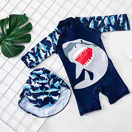 Baby Kid Boys Animals Cartoon Print Beach Jumpsuits Swimwears Wholesale 22042219