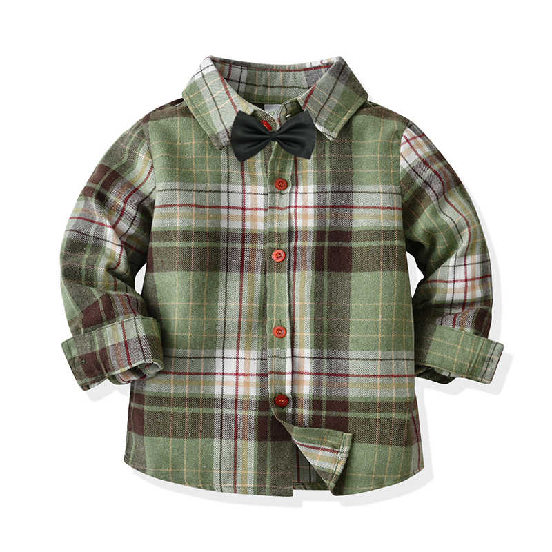 Sku : 211109481Clothing Categories : ShirtsGender : BoysAge : 12months-6yearsFabric : Cotton BlendColor : GreenSeason : Spring,AutumnPattern : Checked,BowOccasion : Casual