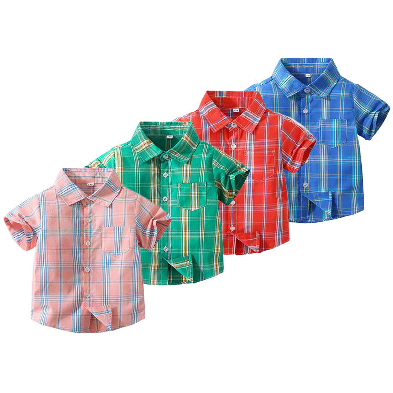Sku : 230308338Clothing Categories : ShirtsGender : BoysAge : 9months-4yearsFabric : 98%Cotton BlendColor : Blue,Green,Pink,RedSeason : SummerPattern : CheckedOccasion : Casual