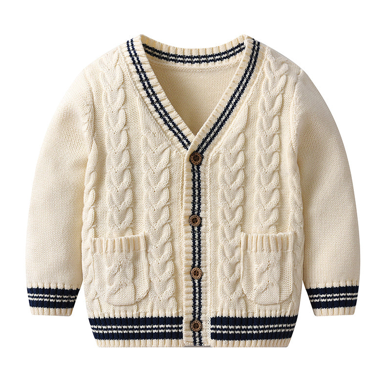 Sku : 22122693Clothing Categories : CardiganGender : BoysAge : 3months-3yearsFabric : 95%Cotton BlendColor : BeigeSeason : Spring,AutumnPattern : Color-blocking,CrochetOccasion : Casual