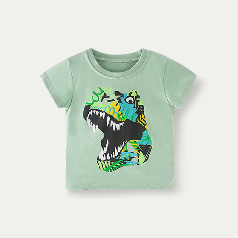 Sku : 220505234Clothing Categories : T-ShirtsGender : BoysAge : 18months-8yearsFabric : Cotton BlendColor : GreenSeason : SummerPattern : Dinosaur,Animals,PrintedOccasion : Casual