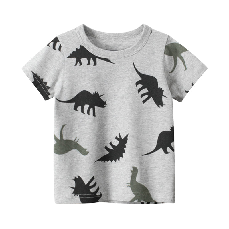 Sku : 220414113Clothing Categories : T-ShirtsGender : BoysAge : 12months-6yearsFabric : Cotton BlendColor : GreySeason : SummerPattern : Dinosaur,Cartoon,PrintedOccasion : Casual