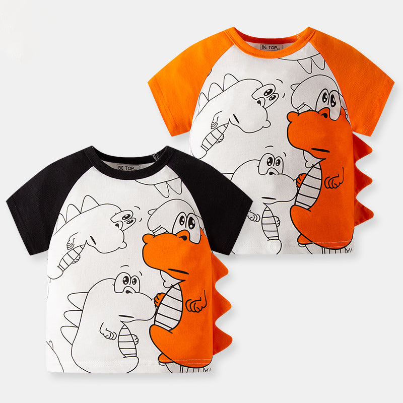 Sku : 24040916Clothing Categories : TopsGender : BoysAge : 12months-6yearsFabric : Cotton BlendColor : Black,OrangeSeason : SummerPattern : Dinosaur,PrintedOccasion : Casual