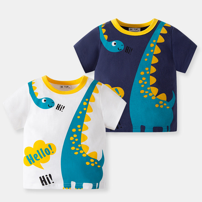 Sku : 24040991Clothing Categories : TopsGender : BoysAge : 12months-6yearsFabric : Cotton BlendColor : White,NavySeason : SummerPattern : Dinosaur,PrintedOccasion : Casual