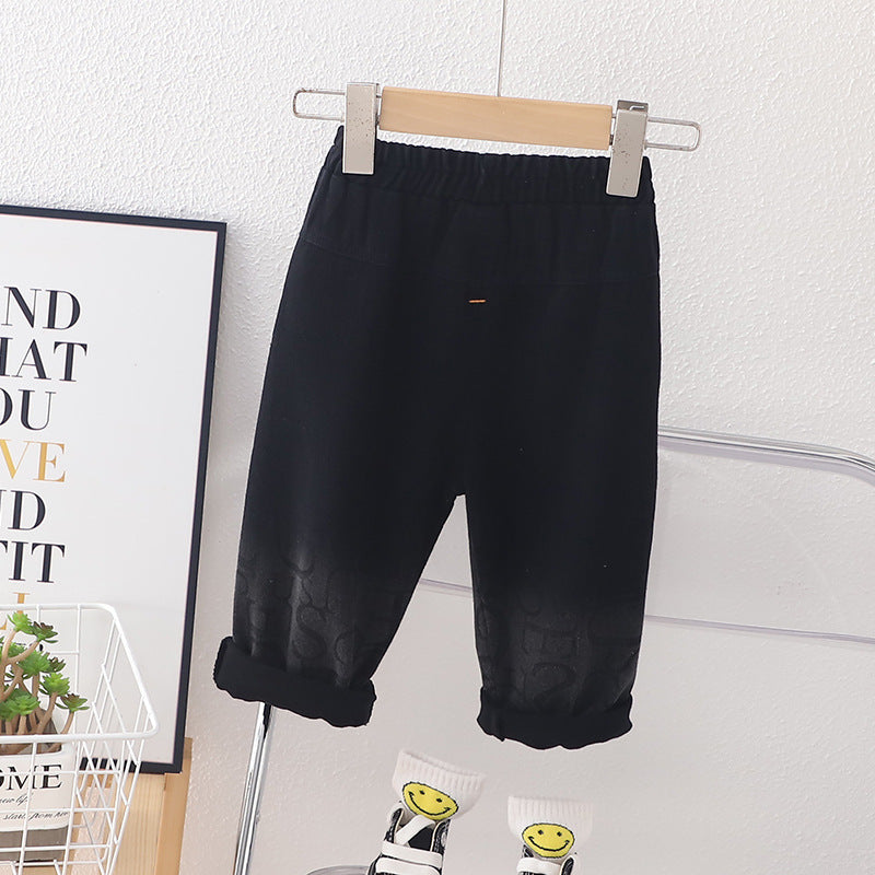 Sku : 230206120Clothing Categories : Pants,JeansGender : BoysAge : 12months-5yearsFabric : 95%Cotton BlendColor : BlackSeason : Spring,AutumnPattern : LettersOccasion : Casual