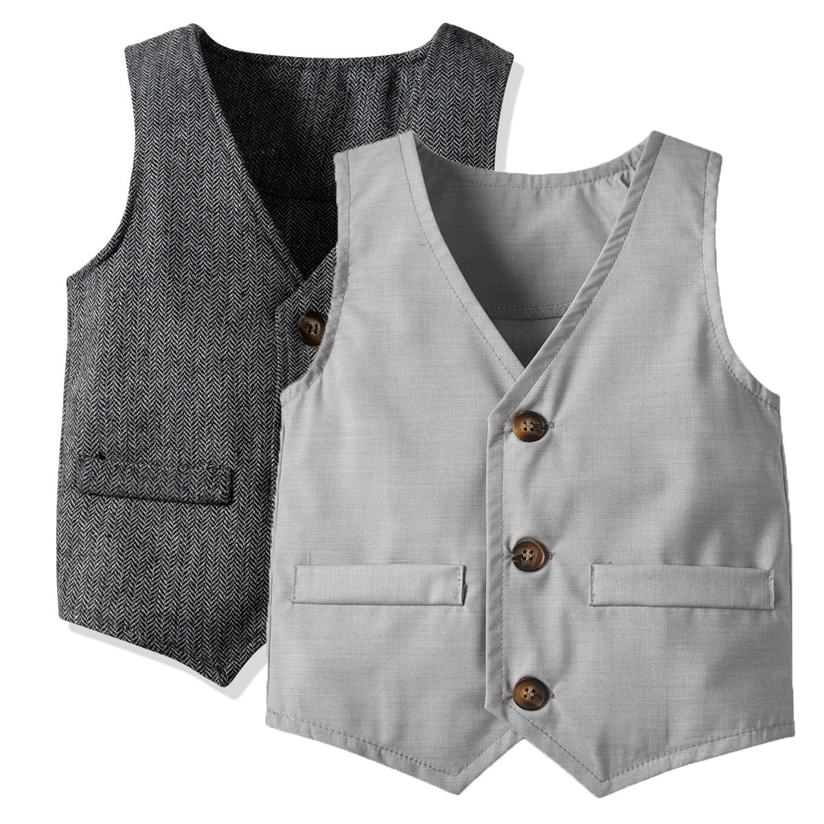 Sku : 00169271Clothing Categories : Vests&WaistcoatsGender : BoysAge : 12months-8yearsFabric : 100% Cotton BlendColor : Grey,SilverSeason : Spring,AutumnPattern : Solid Color,HoundstoothOccasion : Casual