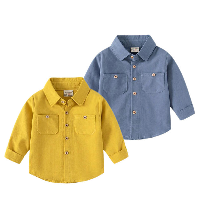 Sku : 221209173Clothing Categories : ShirtsGender : BoysAge : 12months-5yearsFabric : 100%Cotton BlendColor : Blue,YellowSeason : Spring,AutumnPattern : Solid ColorOccasion : Casual