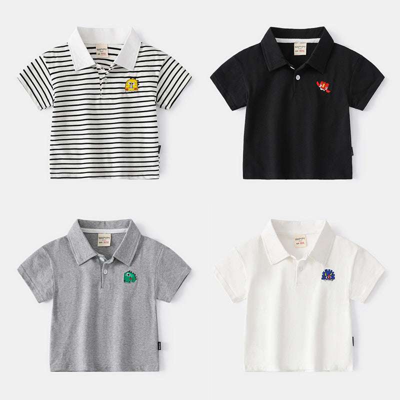 Baby Kid Boys Striped Animals Cartoon Embroidered T-Shirts Polo Shirts Wholesale 220302474