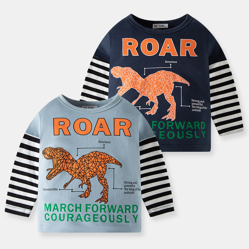 Sku : 22111743Clothing Categories : TopsGender : BoysAge : 12months-6yearsFabric : 100%Cotton BlendColor : Blue,NavySeason : Spring,AutumnPattern : Striped,Letters,Dinosaur,PrintedOccasion : Casual