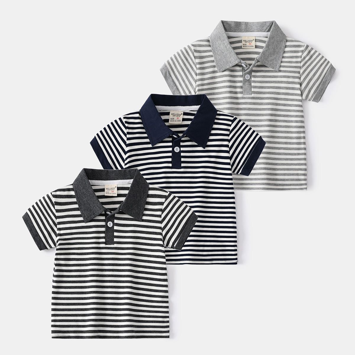 Sku : 220407315Clothing Categories : Polo shirtsGender : BoysAge : 1-8yearsFabric : Cotton BlendColor : Navy,Light Grey,Dark GreySeason : SummerPattern : StripedOccasion : Casual
