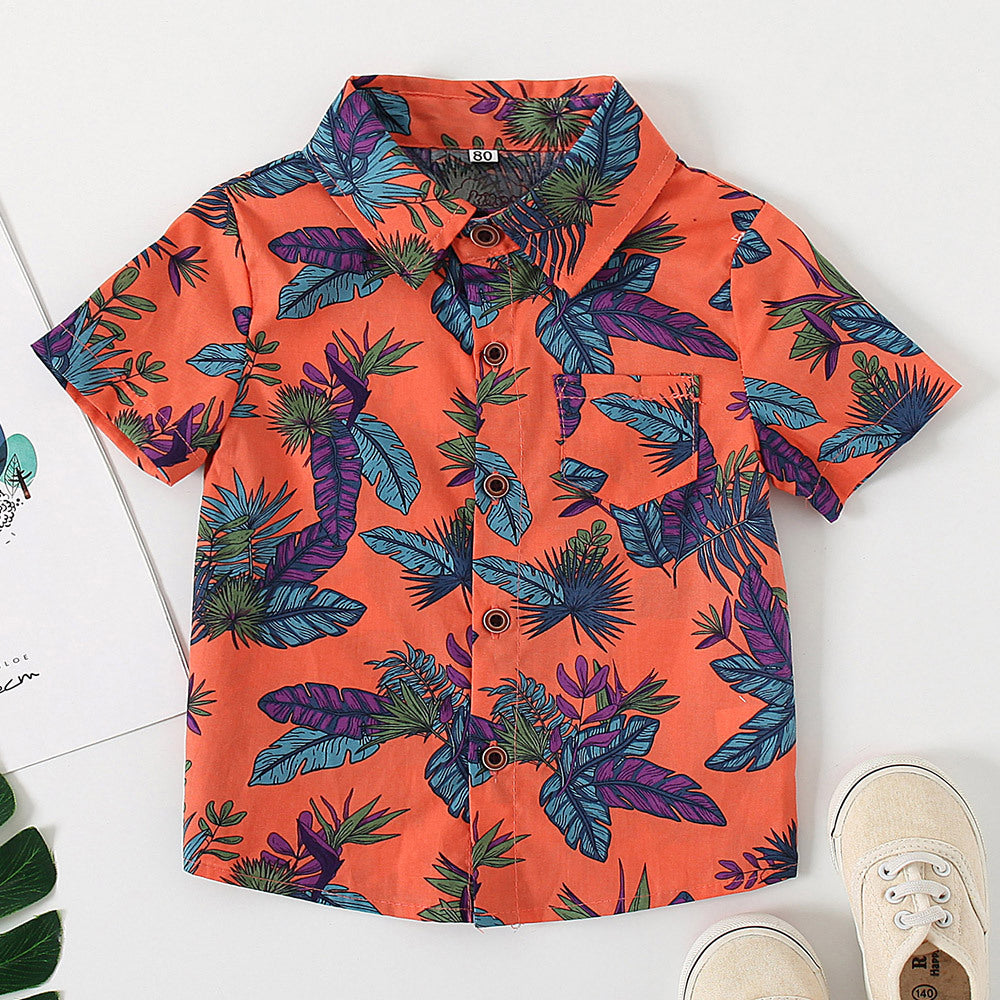 Baby Kid Boys Tropical print Plant Beach Shirts Wholesale 220407338