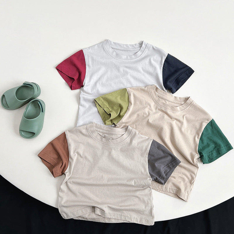 Sku : 24080232Clothing Categories : TopsGender : Girls,BoysAge : 12months-5yearsFabric : Cotton BlendColor : Grey,KhakiSeason : SummerPattern : Color-blockingOccasion : Casual