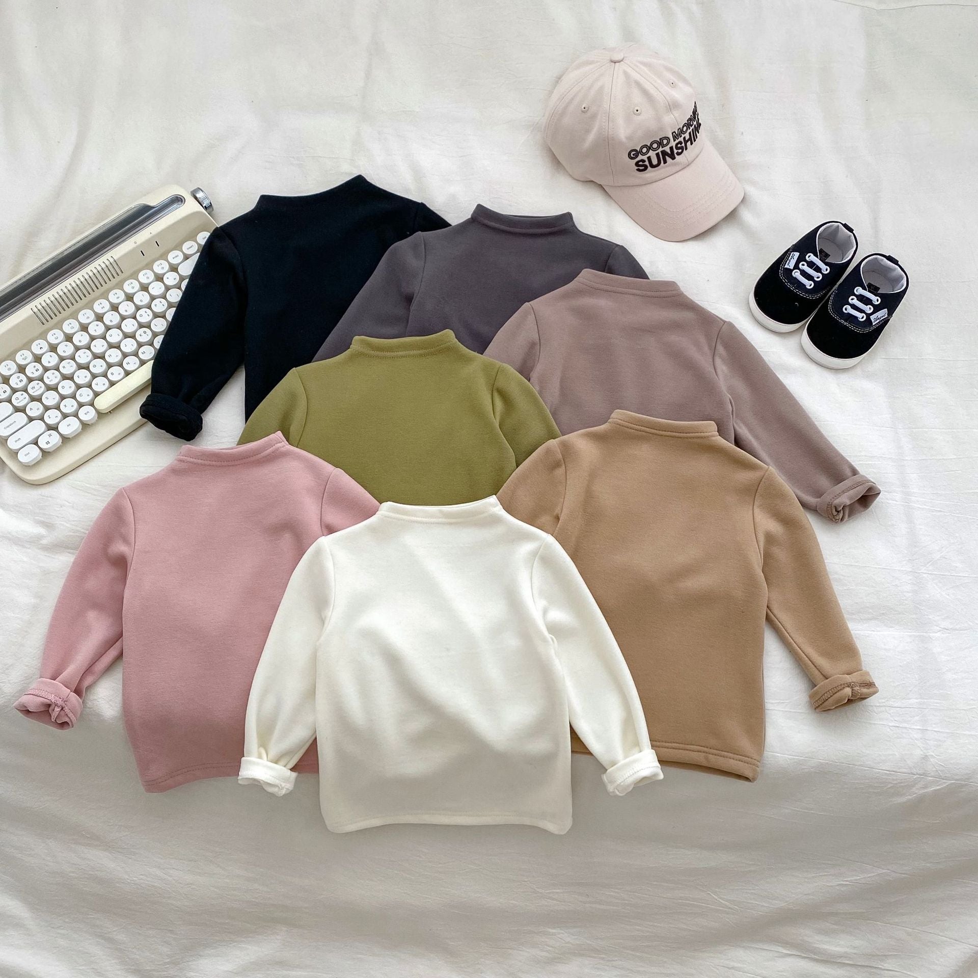 Sku : 240913115Clothing Categories : TopsGender : Girls,BoysAge : 5months-4yearsFabric : Cotton BlendColor : Black,White,Grey,Green,Pink,KhakiSeason : Autumn,WinterPattern : Solid ColorOccasion : Casual