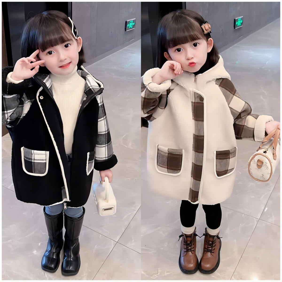 Sku : 22101371Clothing Categories : CoatsGender : GirlsAge : 18months-6yearsFabric : 100%PolyesterColor : Black,KhakiSeason : WinterPattern : CheckedOccasion : Casual