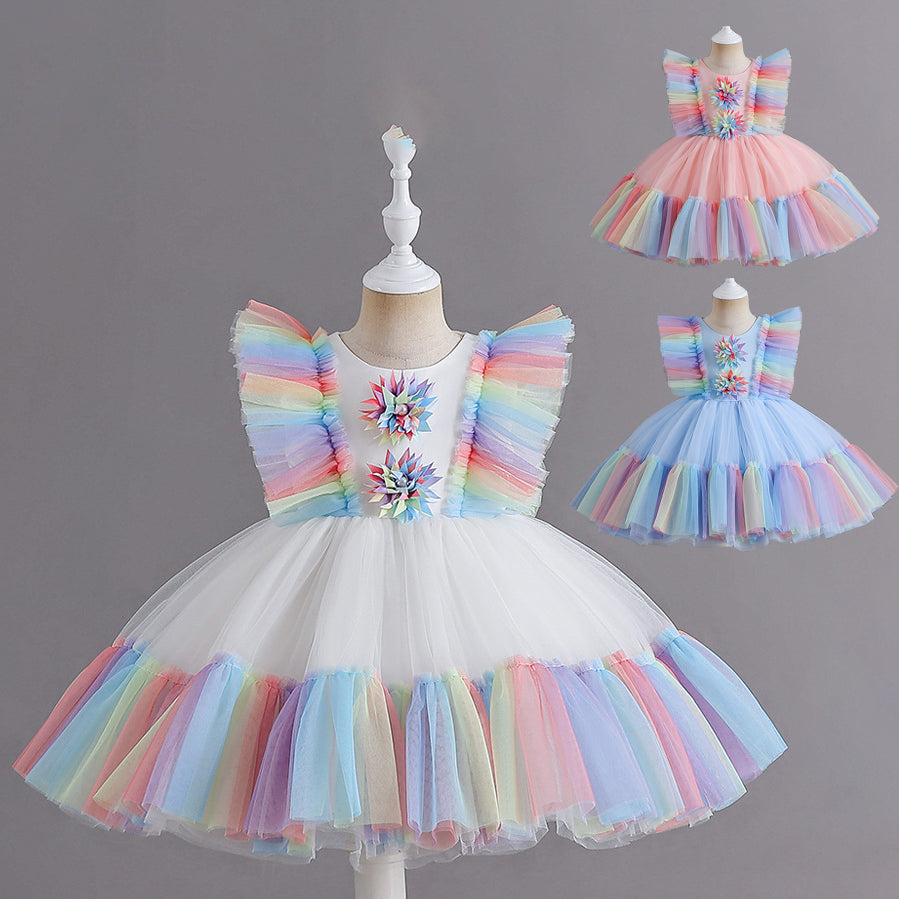 Sku : 230413371Clothing Categories : Princess dressesGender : GirlsAge : 9months-6yearsFabric : PolyesterColor : White,Blue,PinkSeason : SummerPattern : Color-blockingOccasion : Casual,Dressy