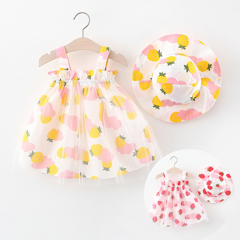 Baby Kid Girls Fruit Print Dresses And Hats Wholesale 22033084
