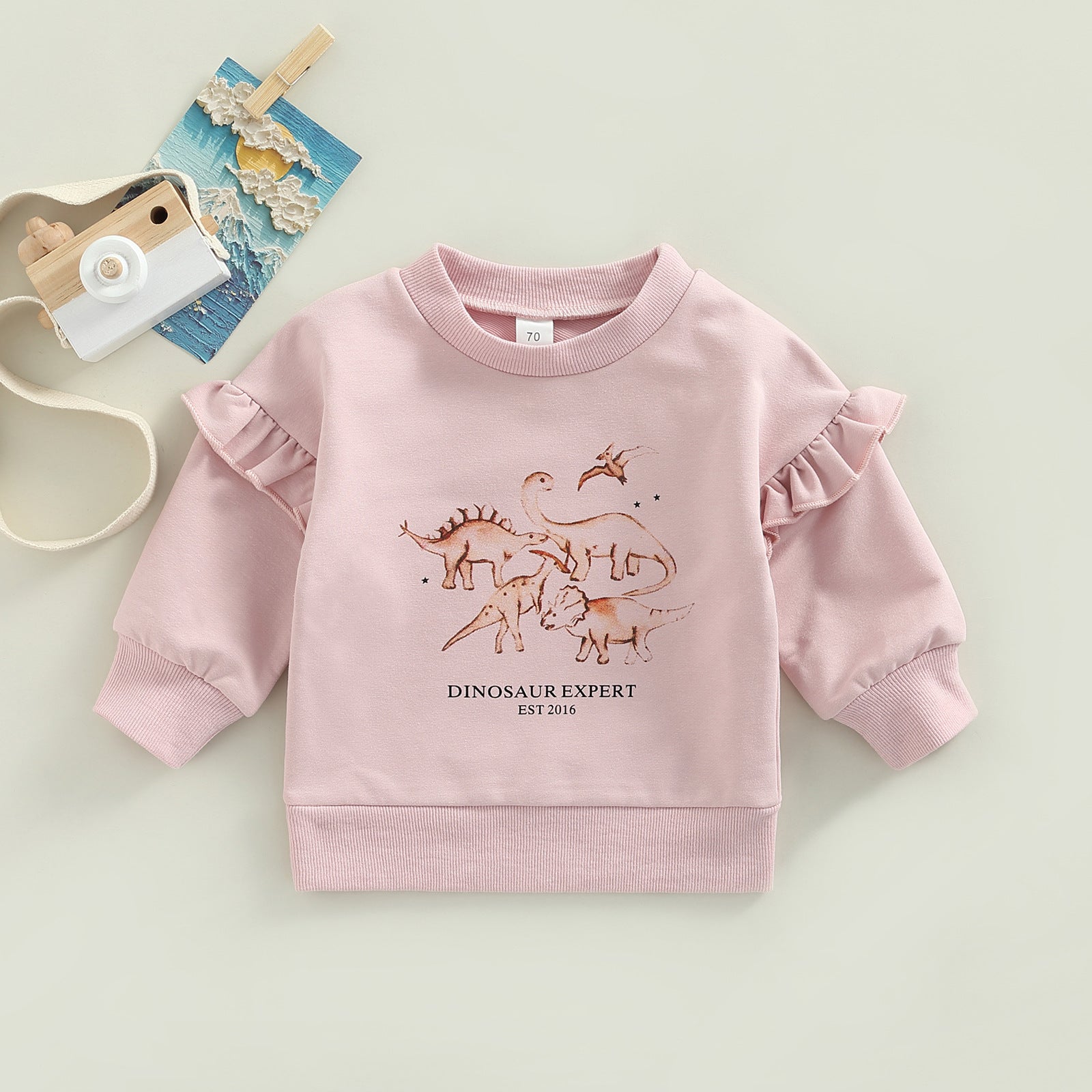 Sku : 220726481Clothing Categories : Hoodies&SwearshirtsGender : GirlsAge : 6months-3yearsFabric : Cotton BlendColor : PinkSeason : Spring,AutumnPattern : Letters,Dinosaur,Cartoon,PrintedOccasion : Casual