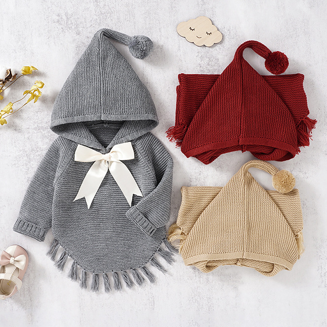 Sku : 22122909Clothing Categories : Jackets&OutwearsGender : GirlsAge : 9months-3yearsFabric : 95%Acrylic fibersColor : Grey,Red,BrownSeason : Spring,Autumn,WinterPattern : Solid Color,BowOccasion : Casual