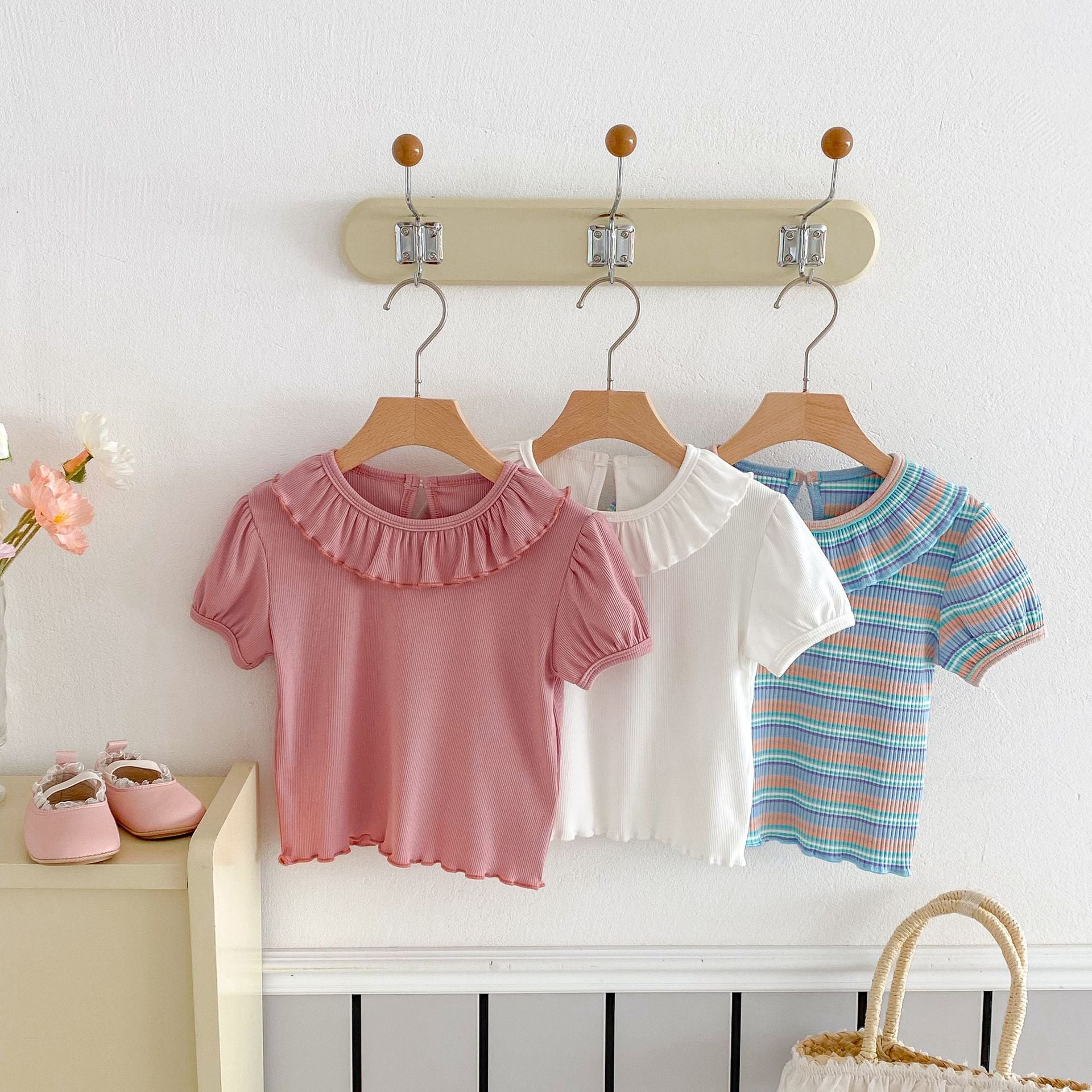 Sku : 25050885Clothing Categories : TopsGender : GirlsAge : 9months-5yearsFabric : Cotton BlendColor : White,Pink,MultiSeason : SummerPattern : Solid Color,StripedOccasion : Casual
