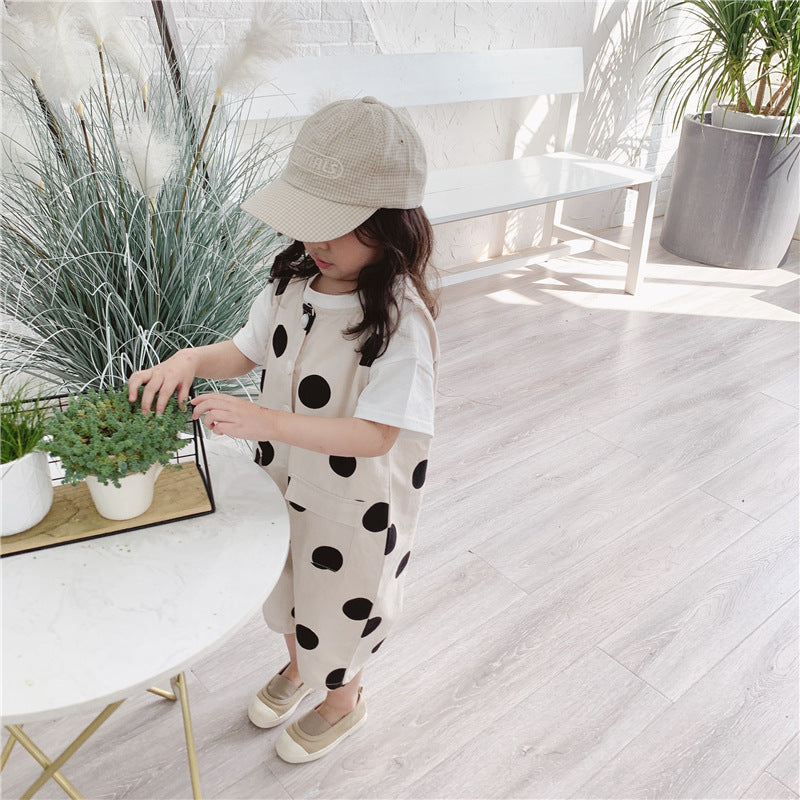 Sku : 22041807Clothing Categories : JumpsuitsGender : UnisexAge : 9months-5yearsFabric : Cotton BlendColor : BeigeSeason : Spring,Summer,AutumnPattern : Polka dots,PrintedOccasion : Casual