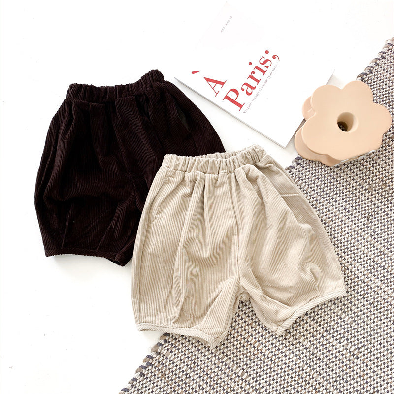 Sku : 22021168Clothing Categories : ShortsGender : Girls,Boys,UnisexAge : 12months-8yearsFabric : Cotton Blend,CorduroyColor : Beige,CoffeeSeason : Spring,AutumnPattern : Solid ColorOccasion : Casual