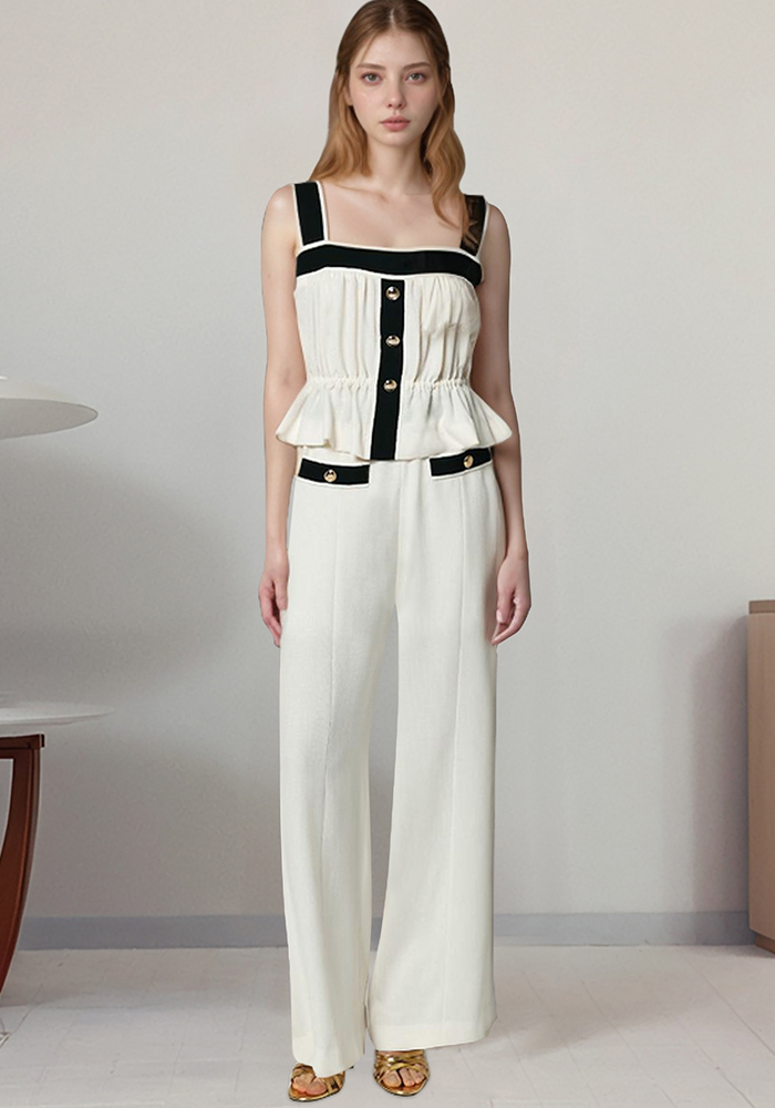 Spring/Summer Fashionable Strap High-Waist Wide-Leg Two-Piece Pants Set
