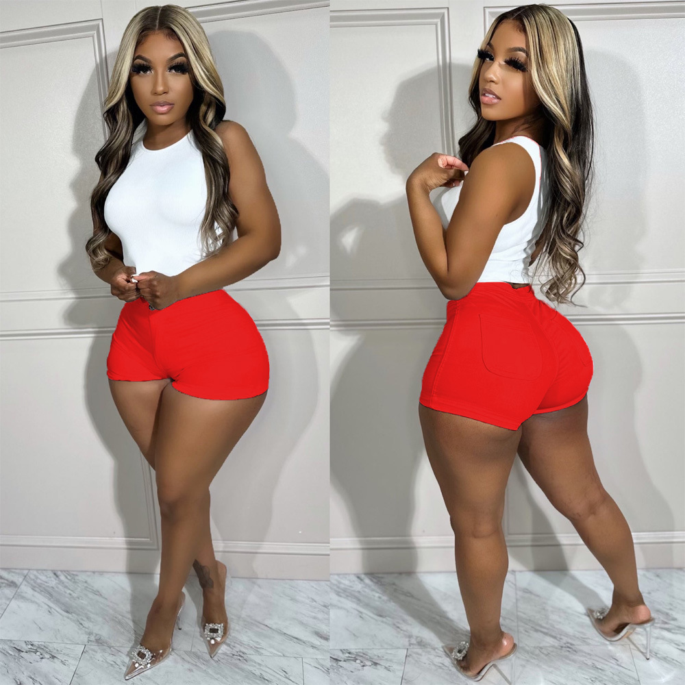 Seamless Simulated Denim Pattern Print Outdoor Wear High Stretch Mid-Rise Women’s Square Leg Shorts