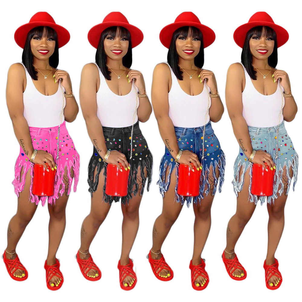 Fringe Denim Shorts Women’s Color Casual Drill Denim Shorts