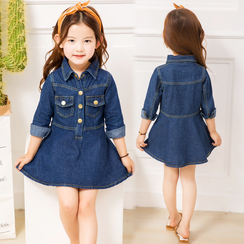 Kid Girl Turn Down Collar Denim Dress Wholesale 18103178