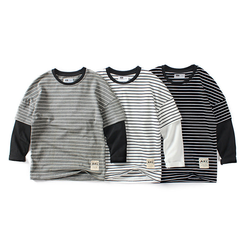 Sku : 211111401Clothing Categories : TopsGender : Girls,BoysAge : 4-12yearsFabric : Cotton BlendColor : Black,White,GreySeason : Spring,AutumnPattern : StripedOccasion : Casual