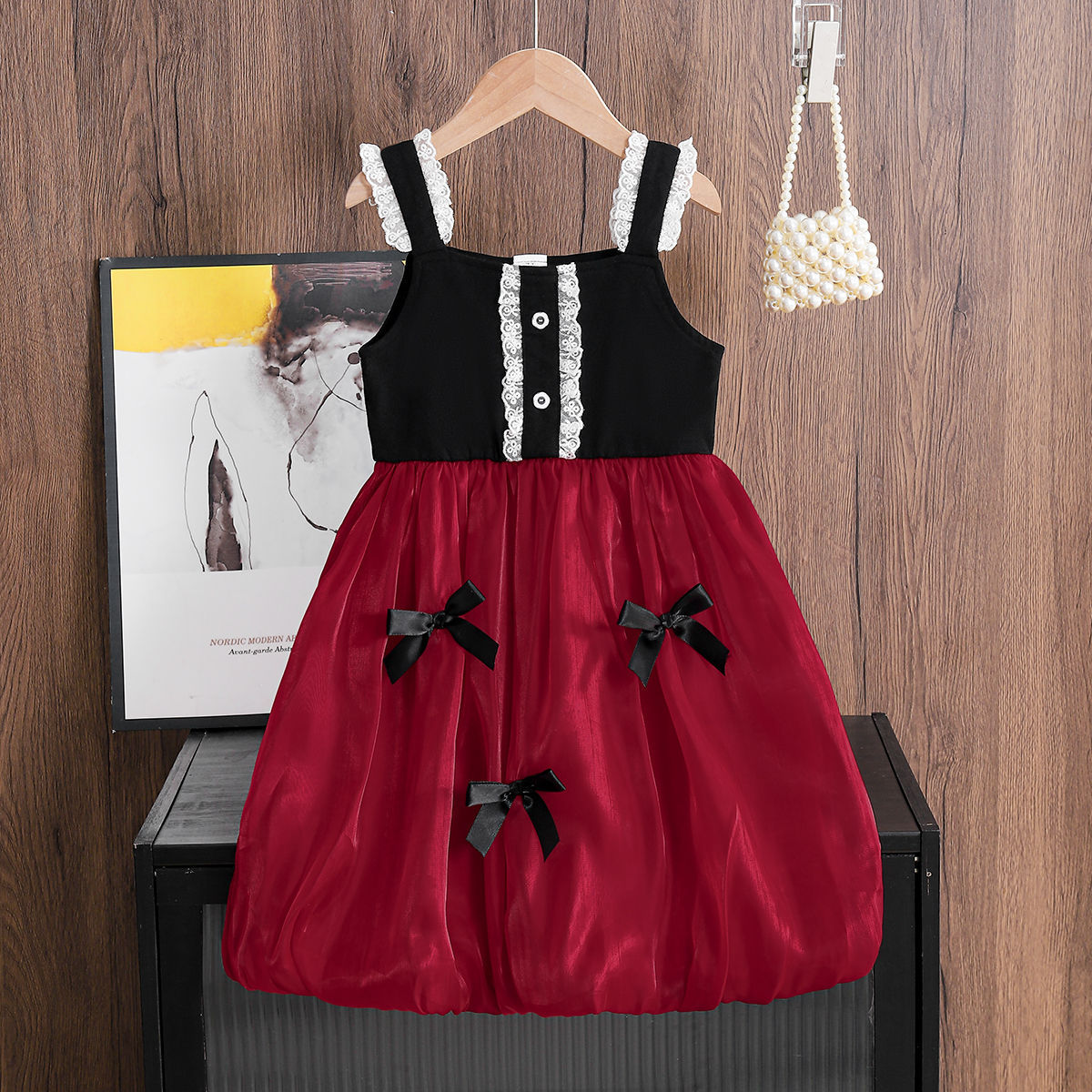 Sku : 25070850Clothing Categories : DressesGender : GirlsAge : 4-7yearsFabric : PolyesterColor : BlackSeason : SummerPattern : Color-blocking,BowOccasion : Casual