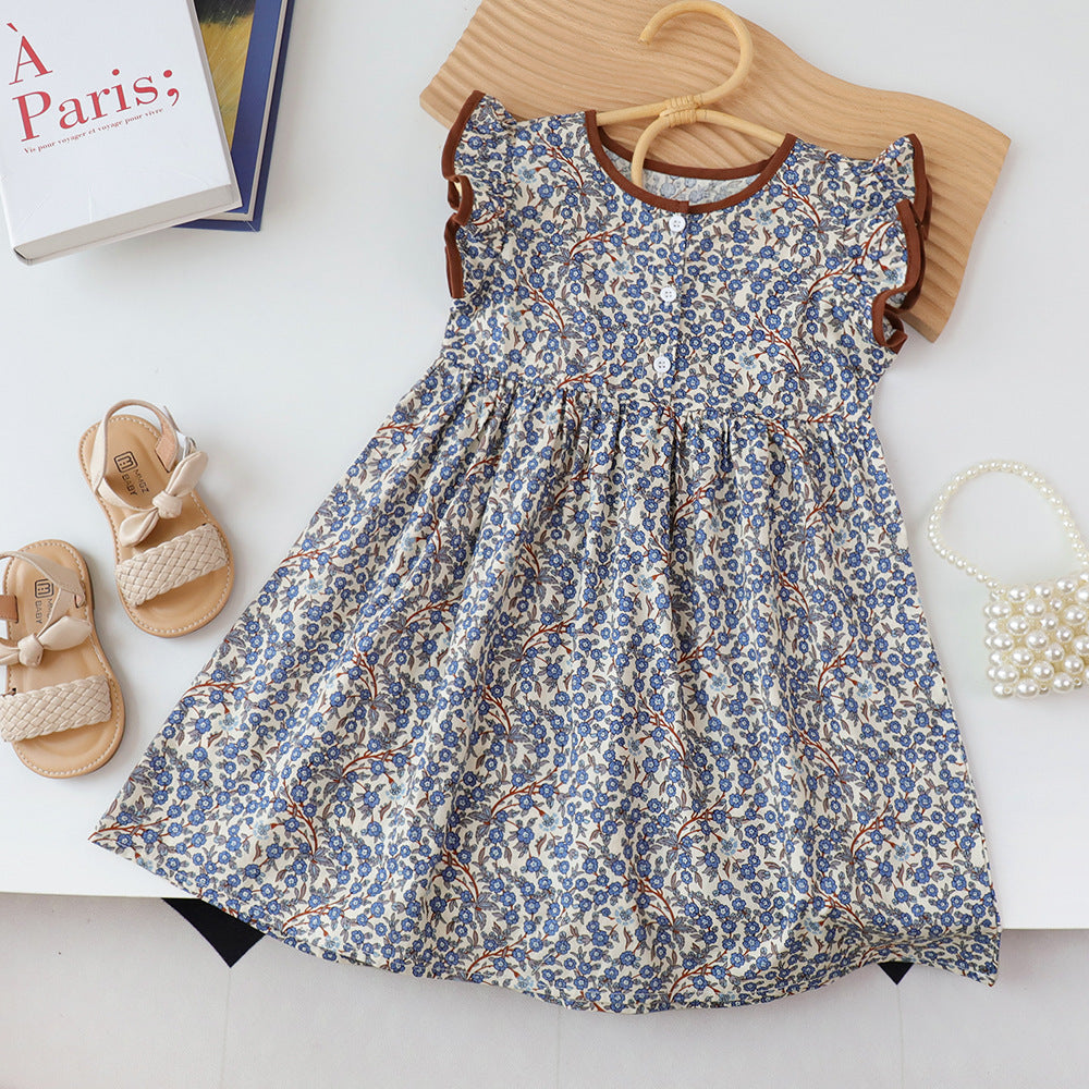 Sku : 240701151Clothing Categories : DressesGender : GirlsAge : 3-7yearsFabric : Cotton BlendColor : NavySeason : SummerPattern : Flower,PrintedOccasion : Casual