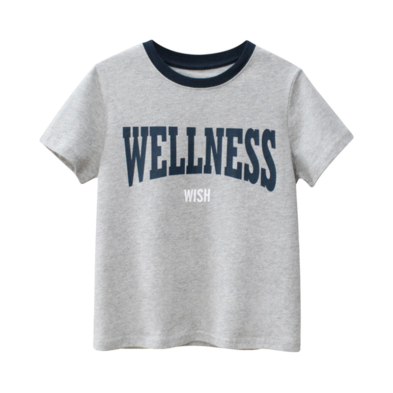 Sku : 220929226Clothing Categories : T-ShirtsGender : Girls,Boys,UnisexAge : 4-9yearsFabric : 100%Cotton BlendColor : GreySeason : SummerPattern : LettersOccasion : Casual