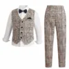 SHEIN 2pcs/Set Tween Boys Khaki Plaid Vest Pants Suit, For Christmas