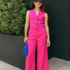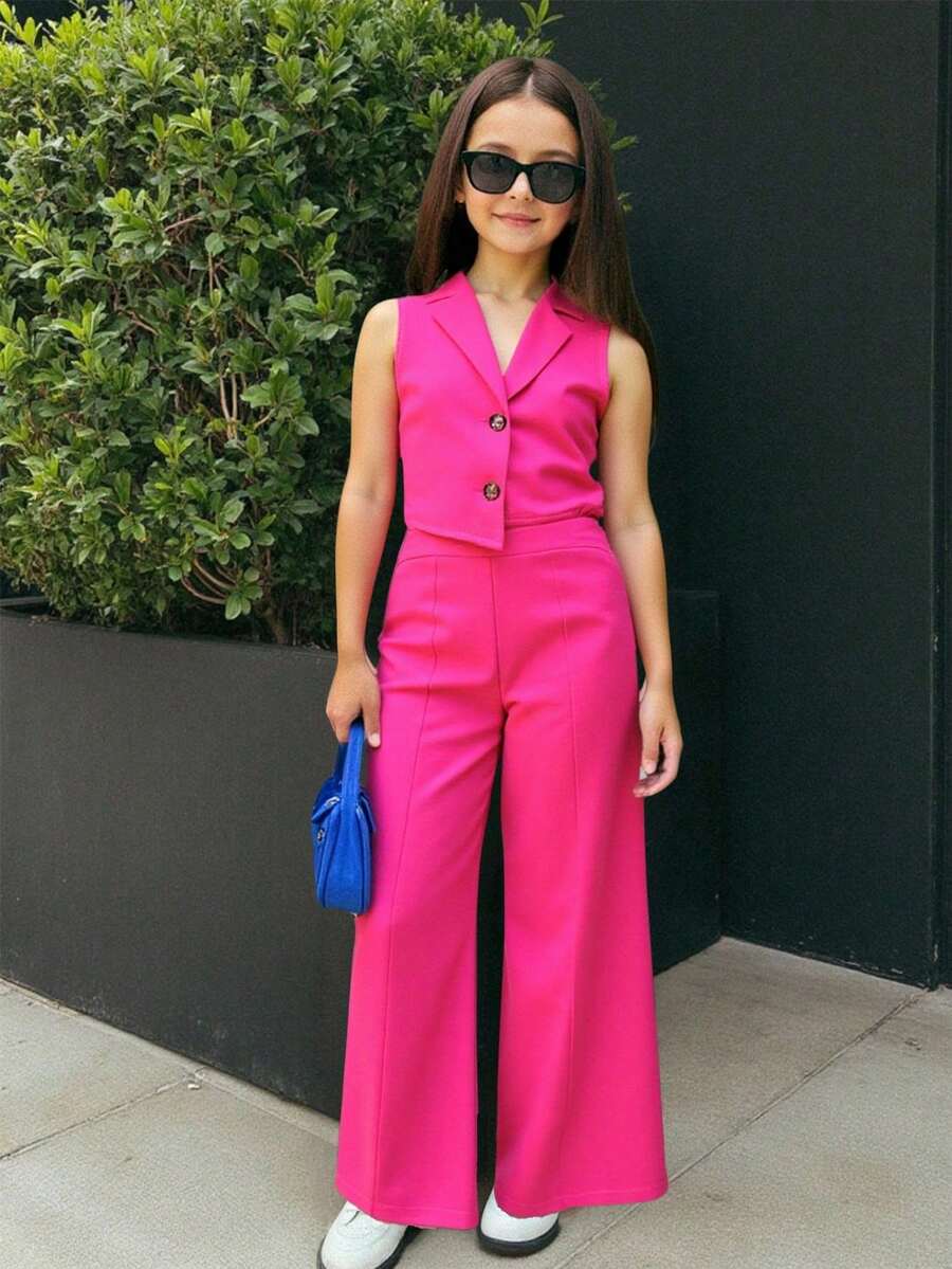 SHEIN 2pcs/Set Tween Girls’ Solid Color Lapel Neck Single-Breasted Vest And Pants Set