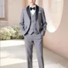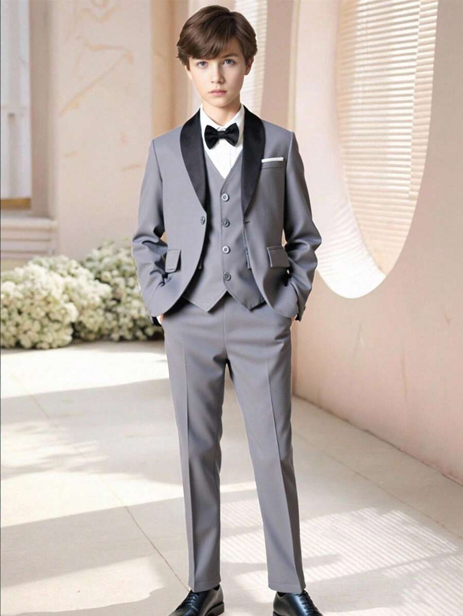 SHEIN 3pcs Tween Boy Gentleman Set: Casual Blazer + Vest Jacket + Trousers, Elegant Outfit For Birthday Party, Wedding, Graduation, Anniversary, Wedding Guest, Pageboy, Ring Bearer Fall Winter