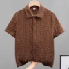 SHEIN Tween Boy Loose Fit Casual Jacquard Short Sleeve Shirt With Turn-Down Collar