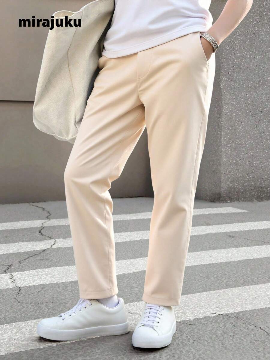 SHEIN Tween Boy Solid Slant Pocket Straight Leg Pants Chic Outfits For Autumn/Winter